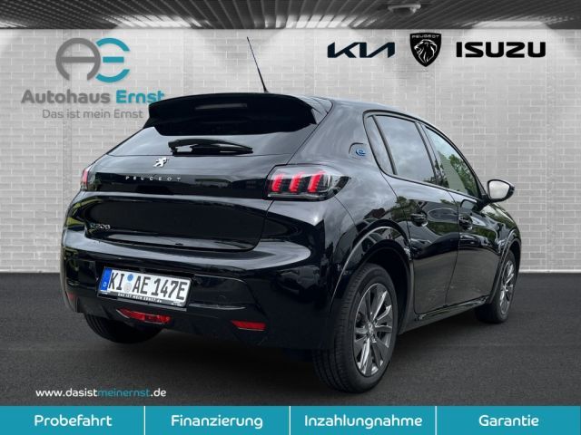 Automatischer Geschwindigkeitsregler ACC, Keyless-System Plus, On-Board-Charger 11 kW, 3-phasig, 3D-Navigationssys. NAC inkl. 3D-Kom., Berganfahrhilfe, Sitzheizung vorn, Klimaautomatik, Geschwindigkeitsregelanlage u. Begrenzer, Frontkollisionswarner, Follow-me-home-Funktion (automatisch), Fensterheber elektrisch, hinten, Einparkhilfe hinten, Radiozubehör: Mirror Screen, Multifunktionaler Touchscreen mit 7"", Regensensor, Reifenpannenset, Sitz: Fahrer höhenverstellbar, Technik Elektroversion, Türgriffe in Wagenfarbe lackiert, Zentralverriegelung mit Fernbedienung, Verkehrsschilderkennung, Rückfahrkamera, Reifendruckkontrollsystem, ""e""-Logo auf der C-Säule und e208-Logo, ABS, Ablagefach mit Smartphone-Halterung, Active Safety Brake, Airbag Fahrer- und Bei.seite""Full-Size"", Airbag: Seitenairbag vorn, Airbag: Vorhangairbags vorn und hinten, Akustischer Fußgängerwarner (AVAS), Außenspiegel anklappbar, Außenspiegel verstellb. u. beh.(2), Außenspiegelkappen schwarz, Blende zwischen den Heckleuchten in, Blinkleuchten mit Spurwechsel-Tippfunkti, Bordcomputer, Bremsleuchte, dritte, Deckenleuchte vorn, 2 Leselampen vorn, Digitaler Radioempfang DAB +, Digitales Kombiinstrument mit hochauflös, Dreipunkt-Sicherheitsgurte vorn/hinten, EBV (Elektronische Bremskradtverteilung), ESP mit ASR, Eco-LED-Scheinwerfer, Fahrmodischalter ""Eco"" und ""Sport"", Fensterheber elektrisch vorne, Feststellbremse elektrisch, Frontscheibe geräuschdämmend, Getriebe: Direktantrieb, Getränkehalter in der Mittelkonsole, Heckscheibe beheizbar, Heckscheibenwischer, Heckschürze in Schwar, Heckspoiler schwarz glänzend, Innenspiegel automatisch abblendbar, Kartentaschen an den Vordersitzlehnen, Kindersicherung manuell, Kopfstützen (5), Kühlergrill mit Applikationen in Wagenfa, LED-Heckleuchten, LED-Tagfahrlicht, Lackierung: Sonderlackierung Metallic, Lenkrad: Multifunktionslederlenkrad, Lenksäule: höhen- und tiefenverstellbar, Lichtsensor, Mittelarmlehnen vorne, Mode 3-Ladekabel, Müdigkeitswarner, Notbremsassistent, Pollenfilter, Polster: Stoff/Kunstleder (Cozy), Radkästen in glänzendem Schwarz, Räder: Leichtmetall ""Elborn"" 16"", Rücksitzlehne geteilt umklappbar, Seiten- und Heckscheibe stärker getönt, Servolenkung, elektrisch, Spurhalteassistent, mit Lenkeingriff, Steckdose 12 Volt im Kofferraum, Türverriegelung automatisch beim Anfahre, Wegfahrsperre,