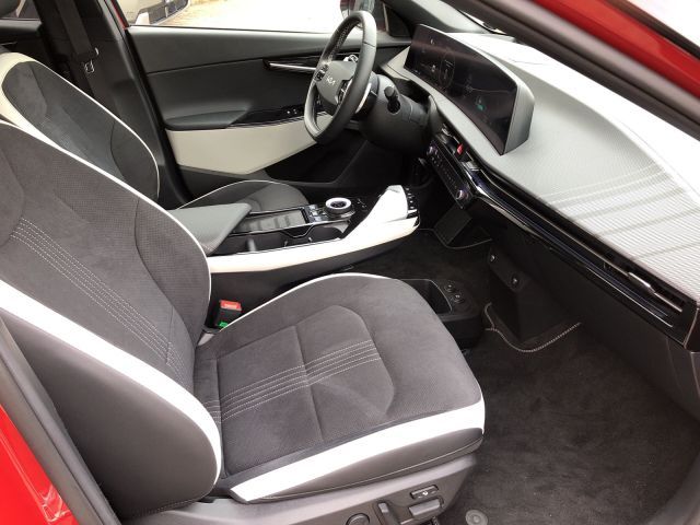 ABS mit EBD und ESS, Adaptive Geschwindigkeitsregelanlage, Airbag: 2 Frontairbags, Airbag: Mittenairbag vorn, Airbag: Seitenairbags vorn und Vorhangai, Alternator Management System (AMS), Ambiente-Beleuchtung, Autobahnassistent II (HDA), Außenspiegel beheizbar u. el. anklappbar, Außenspiegel in Klavierschwarz, Berganfahrhilfe (HAC), Bluetooth-Freisprecheinrichtung, Bremsleuchte: Dritte mit LED, Dachspoiler, Drive Mode Select, Dämmerungssensor, ESC (Elektronisches Stabilitätsprogramm), Fensterheber elektrisch vorne und hinten, Fernlichtassistent, Frontkollisionswarner m. Fußgängererken., Frontkollisionswarner m. Fußgängererken., Gegenlenkunterstützung, Geschwindigkeitsassistent intelligent, Geschwindigkeitsregelanlage, Navigations, Getriebe: Direktantrieb, Glasschiebedach, ausstellbar, elektrisch, Heckklappe elektrisch (inkl. Sensorsteue, Heckscheibenheizung, ISOFIX-Halterung an äußeren Rücksitzen, Induktive Ladestation für Smartphones, Innenrückspiegel selbstabblendend, Insassenalarm, sensorgesteuert (ROA), Integriertes Digitaldisplay 31.2 cm, Kindersicherung in den hinteren Türen, Klimaautomatik mit Zweizonen-Kontrolle, Kopfstützen aktiv vorne, LED-Rückleuchten, LED-Scheinwerfer-Dual adaptive, LED-Spots an C-Säule, Lackierung: Metalliclackierung, Ladeanschluss: Adapter für V2L-Nutzung, Ladekabel Typ-2 auf Typ-2-Stecker, Lendenwirbelstütze Beifahrer, elektrisch, Lenkrad höhen- u. tiefenverstellbar, Lenkrad: Lederlenkrad beheizbar, Lenkrad: Multifunktionslenkrad, Mittelarmlehne hinten, Multikollisionsbremse (Multiple Collisio, Navigation: Kia Kartennavi. (12.3 Zoll), Notruf-Service e-Call, On-Board-Charger (3-Phasen, AC), Online-Dienste Kia Connect mit Kia Live, Paket: P5 - Assist-Plus Aktiver Totwinkelassistent mit Monitoranzeige Head-Up Display inkl. Augmented Reality-Funktionen Kollisionsvermeidungsassistent Remote Smart Parking Assist Rundumsichtkamera [Spurwechselassistent, Totwinkel-Assistent], Parkbremse, elektronisch (EPB), Parksensoren vorn und hinten, Polster: Wildlederoptik aus veganem Bezu, Privacy-Verglasung (ab B-Säule), Radiozubehör: USB-Anschluss, Regensensor, Rekuperationswippen am Lenkrad, Räder: 19-Zoll-Leichtmetallfelgen, Rückfahrkamera (Rear View Monitor, RVM), Schnellladesystem (400 V, 800 V, DC), Servolenkung, Sicherheitsgurte vorn höhenverstellbar, Sitze: Beifahrersitz höhenverstellbar, Sitze: Fahrersitz höhenverstellbar, Sitze: Lendenwirbelstütze Fahrer, elektr, Sitze: Memory-Funktion Fahrersitz, Fahre, Sitze: Premium-Relaxion Sitz (Beifahrer), Sitze: Premium-Relaxion Sitz (Fahrer), Sitze: Rücksitzlehne im Verhältnis 60:40, Sitze: Sitzheizung hinten, Sitze: Sitzheizung vorn, Sitze: Sitzventilation vorn, Sitze: Ski-Durchreiche, Smart Key und Startknopf, Solarglas-Front u. vordere Seitenfenster, Sportpedale, Spurhalteassistent inkl. Müdigkeitswarne, Stauassistent (Lane Follow Assist, LFA), Totwinkelassistent aktiv, Türgriffe mit automat. Flush-Funktion, USB-Anschluss, Tunnelkonsole vorn (2 Stk, USB-Anschluss, an Sitzlehne der Frontsit, V2L (Vehicle-to-Load): Laden von extern, Vorheizsystem für die Batterie, Wegfahrsperre, Wärmepumpe zur Verbesserung der realen Reichweite bei niedriger Außentemperatur, Zentralverriegelung,