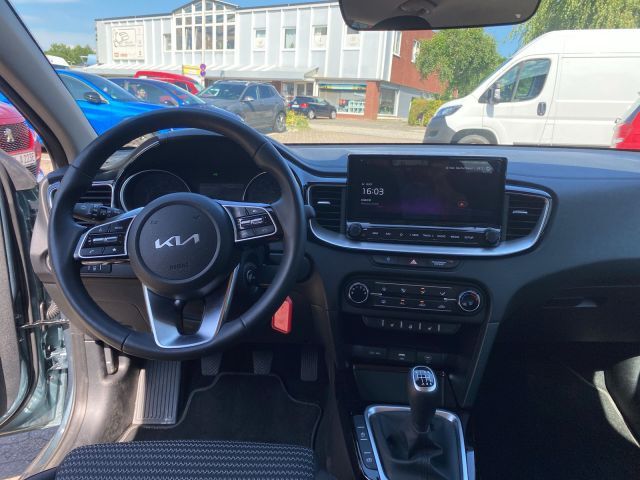 12 V Steckdose, ABS mit EBD, Airbag: 2 Frontairbags, Airbag: 2 Seitenairbags, Airbag: 2 Vorhangairbags, Außenspiegel beheizbar, Außenspiegel elektrisch einstellbar, Außenspiegel in Wagenfarbe, Berganfahrhilfe (HAC), Bluetooth-Freisprecheinrichtung, Bordcomputer, Bremsassistent (BAS), Bremsleuchte: Dritte mit LED, Bremslicht, Aktiv (Emergency Stop Signal, Dachhimmel und Säulenverkleidung in Grau, Dachkonsole mit Lesespots und Brillenf., Diebstahlwarnanlage, Drehzahlmesser, Dämmerungssensor, ESC (Elek.Stabilitätspro.) m.Traktionsk., EcoDynamics (Start-Stopp-System ISG), Einsätze in Glanzschwarz, Energie-Regenerationssystem, Fensterheber Elektrisch mit Öffnungs-/Sc, Fensterheber elektrisch, vorn u. hinten, Fernlichtassistent, Frontkollisionswarner m. Fußgängererken., Frontscheinwerfer (Halogen), Fußmattenset, Gepäcknetzösen, Gepäckraumbeleuchtung, Geschwindigkeitsregelanlage und -begrenz, Getriebe: 6-Gang-Schaltgetriebe, Getränkehalter vorn, Heckscheibenheizung, Heckscheibenwischer, ISOFIX-Halterung an äußeren Rücksitzen, Insassenalarm (Rear Seat Alert, RSA), Intelligenter Geschwindigkeitsassistent, Klimaanlage, manuell, Kopfstützen (5), Kunstlederschaltknauf, Kühlergrill in Glanzschwarz mit Chromrah, LED-Rückleuchten, LED-Tagfahrlicht hinten, LED-Tagfahrlicht vorn, Lackierung: Metalliclackierung, Lenkrad beheizbar, Lenkrad: Lederlenkrad, Lenkrad: Multifunktionslenkrad, Mittelarmlehne hinten, Mittelarmlehne vorne, Müdigkeitswarner, Navigation: Kia Kartennavi. (10.25 Zoll), Nebelscheinwerfer, Online-Dienste Kia Connect mit Kia Live, Ottopartikelfilter, Parksensoren hinten, Polster: Stoff, Radiozu.: USB-Schnittstelle, Radiozub.: 2 Frontlautsprecher, Radiozub.: 2 Hecklautsprecher, Radiozub.: 2 Hochtöner, Radiozub.: Dachantenne, Radiozubehör: Dig. Radioempfang DAB/DAB+, Reifendruckkontrollsystem, Räder: LM Felgen 16 Zoll mit 205/55 R16, Räder: Reifenreparaturset, Rückfahrkamera, Servolenkung, Sicherheitsgurte vorn höhenverstellbar, Sitze: Fahrersitz höhenverstellbar, Sitze: Rücksitzbank im Verhältnis 60:40, Sitze: Sitzheizung vorn, Smartphone-Schnittstelle Android Auto, Sonnenblenden mit Make-up Spiegeln, bele, Spurfolgeassist(Lane Follow Assist, LFA), Spurhalteassistent, Supervision-Instrumentenanzeige 10,7 cm, Türöffner innen in Chromoptik, Variabler Gepäckraumboden, Wegfahrsperre, Wärmeschutzverglasung, Zentralverriegelung mit Funkfernbed.,