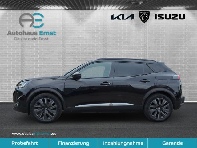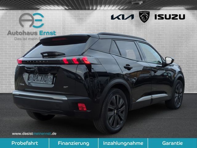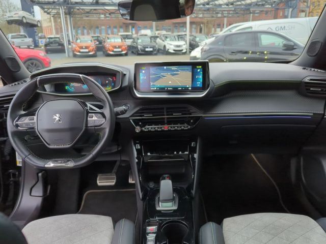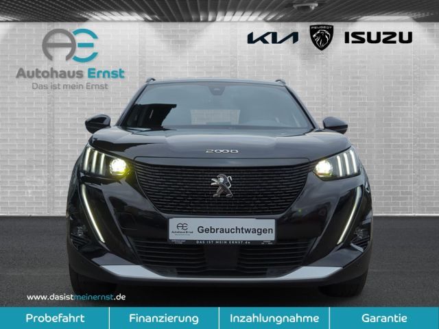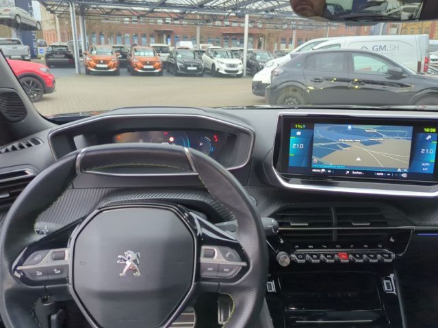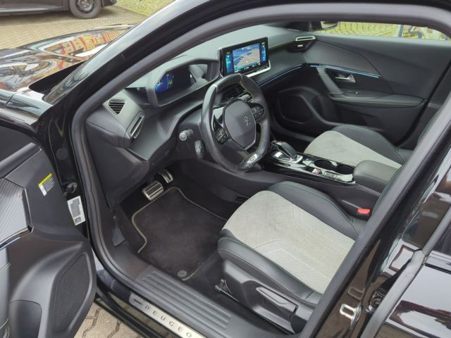 Automatischer Geschwindigkeitsregler ACC mit STOP & GO-Funktion inkl. Spurpositionierungsassistent und Active Safety Brake Plus, Induktive Ladestation, Lackierung: Onyx Schwarz, Panorama-Ausstell-/Schiebedach mit manueller Jalousie, Sitze: Sitzheizung vorn, Toterwinkelassistent Passiver [Spurwechselassistent, Totwinkel-Assistent], Seiten- und Heckscheibe stärker getönt, Rückfahrkamera mit 180°-Umgebungsansicht, Regensensor, Radiozubehör: Mirror Screen - Übertragung von multimedialen Inhalten und Apps eines kompatiblen Smartphones auf den Touchscreen des Fahrzeugs, über den die kompatiblen Funktionen und Apps direkt bedient werden können - Android Auto und Mirror Link (für kompatible Smartphone-Modelle mit Android-Betriebssystem) - CarPlay (für kompatible iPhone-Modelle von Apple), Klimaautomatik (2-Zonen) inkl Aktivkohlenfilter, Grüne Ziernähte am Armaturenbrett, Lenkrad, Schaltknauf und den Armlehnen der Vorder-und Hintertüren, Full-LED-Scheinwerfer - automatische Leuchtweitenregulierung - LED-Blinklicht vorn, ""e""-Logo auf den Kotflügeln und ""e2008""-, 3-Pu.-Sicherheitsgurte auf allen Plätzen, 3D-Navigationssystem NAC inkl. 3D-Kombii, ABS, Ablagefach mit Smartphone-Halterung, Airbags (6), Akustischer Fußgängerwarner (AVAS), Außenspiegel anklappbar, Außenspiegel verstellb. u. beh.(2), Außenspiegelkappen in schwarz, Berganfahrhilfe, Blende zwischen den Rückleuchten in glän, Blinkleuchten mit Spurwechsel-Tippfunkti, Bordcomputer, Bremsleuchte, dritte, Dachhimmel in Schwarz, Dachreling in glänzendem Schwarz, Deckenleuchte vorn, 2 Leselampen vorn, Dichroitisches Löwen-Emblem, Digitaler Radioempfang DAB +, Digitales Kombiinstrument mit hochauflös, EBV (Elektronische Bremskradtverteilung), ESP mit ASR, Einparkhilfe hinten, Einparkhilfe vorn, akustisch und visuell, Elektroversion: Combo-Anschluss (Combine, Elektroversion: Mode 2-Ladekabel (Typ 2,, Elektroversion: On-Board-Charger 11 kW -, Elektroversion: Wärmepumpe, Fahrmodischalter ""Eco"" und ""Sport"", Fensterheber elektrisch, vorn und hinten, Fernlichtassistent, Feststellbremse elektrisch, Follow-me-home-Funktion (automatisch), Frontkollisionswarner, Frontschürze in Chrom-Optik, Fußmatten vo.u.hi. m. grünen Ziernähten, GT-Logo auf den Kotflügeln, Getriebe: Direktantrieb, Getränkehalter in der Mittelkonsole, Heckscheibe beheizbar, Heckscheibenwischer, Heckschürze mit Einsatz in Chrom-Optik, Heckspoiler schwarz glänzend, ISOFIX-Halterung, Innenspiegel elektrisch abblendend, Innenspiegel rahmenlos, Kartentaschen an den Vordersitzlehnen, Kindersicherung hinten, Kopfstützen (2), Kopfstützen hinten, höhenverstellbar, Kühlergrill mit Applikationen in Wagenfa, LED-Ambientebeleuchtung am Armaturenbret, LED-Beleuchtung in Weiß an der Mittelkon, LED-Deckenbeleuchtung vorn, LED-Heckleuchten mit 3D-Effekt, LED-Nebelscheinwerfer mit statischem Kur, LED-Tagfahrlicht, Lackierung: Dach in Schwarz, Lenkrad: Multifunktionslederlenkrad GT, Lichtsensor, Lüftungsdüsen mit Umrandung in satiniert, Make-up-Spiegel, Mittelarmlehnen vorne, Müdigkeitswarner, Notbremsassistent, Pedalerie in Aluminium, Peugeot Connect Box, Pollenfilter, Polster: Alcantara / Kunstleder, Polster: Stoff/Kunstleder (Capy), Radhausverkleidungen in Schwarz, Radio: Audioanlage RCC (Allure, Elektro), Reifendruckkontrollsystem, Reifenpannenset, Räder: Leichtmetallfelgen ""Salamanca"" 17, Scheibenbremsen rundum, vorn innenbelüft, Schlüsselloses Startsystem, Servolenkung, elektrisch, Sitz: Beifahrersitz höhenverstellbar, Sitz: Fahrer höhenverstellbar, Sitze: Rücksitzlehne 40/60 geteilt umkla, Spurhalteassistent, mit Lenkeingriff, Steckdose 12 Volt im Kofferraum, Tempomat, Türverriegelung automatisch beim Anfahre, Verkehrsschilderkennung, Wegfahrsperre, Zentralverriegelung mit Fernbedienung, Zierleiste in Chrom-Optik im unteren Tei, Zierleiste oberhalb des Kühlergrills in, Zierleiste unterhalb der Seitenfenster i, Zwischenladeboden verstellbar,