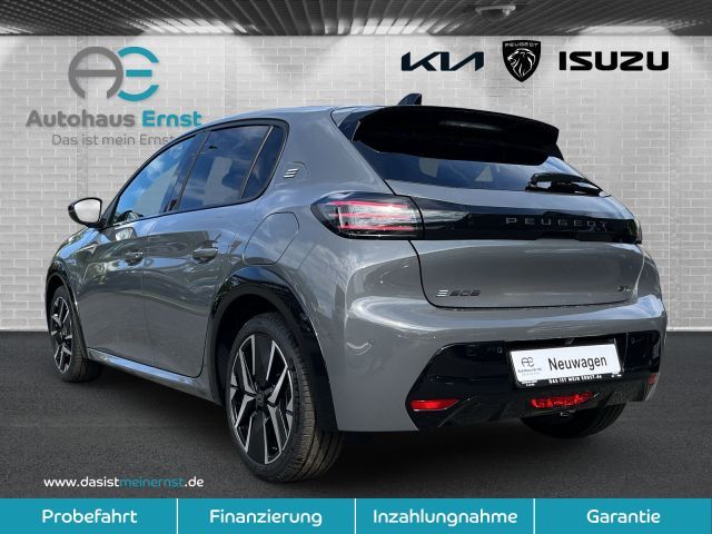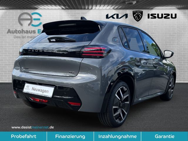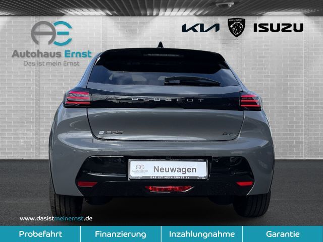 ""e""-Logo auf der C-Säule und e208-Logo, ABS mit EBV, Active Safety Brake, Airbags (6), Akustischer Fußgängerwarner (AVAS), Außenspiegel anklappbar/abblendbar elek., Außenspiegel elektr. verstell- und behei, Außenspiegelkappen in Perla Nera Schwarz, Berganfahrhilfe, Blende zwischen den Heckleuchten in Schw, Blinkleuchten mit Spurwechsel-Tippfunkti, Bordcomputer, Combo-Anschluss (CCS), Dachhimmel in Schwarz, Deckenleuchte vorn, 2 Leselampen vorn, Digi 3D-Kombiinstrument 10""-Bildsch, ESP mit ASR, Einparkhilfe hinten, Einparkhilfe vorn, akustisch und visuell, Fahrmodischalter, Fensterheber elektrisch vorne, Fensterheber elektrisch, hinten, Fernlichtassistent, Feststellbremse elektrisch, Follow-me-home-Funktion (automatisch), Frontkollisionswarner, Frontscheibe geräuschdämmend, Full-LED-Scheinwerfer, Fußmatten vo.u.hi. m. grünen Ziernähten, GT-Logo auf der Kofferraumklappe, Getriebe: Direktantrieb, Getränkehalter in der Mittelkonsole, Grüne Ziernähte am Armaturenbrett, Lenkr, Heckscheibe beheizbar, Heckschürze in glänzendem Schwarz, Heckspoiler schwarz glänzend, Innenspiegel automatisch abblendbar, Kartentaschen an den Vordersitzlehnen, Keyless-System Plus, Kindersicherung, Klimaautomatik inkl. Aktivkohlefilter, Kopfstützen (5), LED-Ambientebeleuchtung am Armaturenbret, LED-Beleuchtung in Weiß an der Mittelkon, LED-Deckenleuchte und LED-Leselampen, LED-Tagfahrlicht, Lackierung: Sonderlackierung Metallic, Lenkrad: Kleines Lenkrad unten und oben, Lenkrad: Multifunktionslederlenkrad, Lichtsensor, Make-up-Spiegel, Mirror Screen, Mittelarmlehnen vorne, Mode 3-Ladekabel, Müdigkeitswarner, Nebelscheinwerfer, Notbremsassistent, On-Board-Charger 11 kW, 3-phasig, On-Board-Charger 7,4 kW, Paket: Sicht- & Navigations-Paket PEUGEOT i-Connect Advanced: - 10""-HD-Touchscreen - 3D Connected Navigation - Natürliche Sprachsteuereung (OK PEUGEOT) - Navigationsexport vom Smartphone auf den 10""-HD-Touchscreen - 2 x USB-Anschlüsse vorn (1 x Typ C Daten + Laden 1 x Typ C nur Laden) 2 x USB-Ladeanschlüsse hinten (1 x Typ C 1 x Typ A) - Rückfahrkamera mit 360°-Umgebungsansicht - Toterwinkelassistent - Induktive Ladestation [Spurwechselassistent, Totwinkel-Assistent], Panoramaglasdach mit Jalousie, Pedalerie in Aluminium, Peugeot Connect Box, Pollenfilter, Polster - Stoff/Kunstleder, Radiozubehör: Digitaler Radioempfang DAB, Radkästen in glänzendem Schwarz, Regensensor, Reifendruckkontrollsystem, Räder: Reifenpannenset (Kompressor + Pannenspray), Räder: Zweifarbige Leichtmetallfelgen, Rücksitzlehne geteilt umklappbar, Scheibenbremsen vorn innenbelüftet, Schlüsselloses Startsystem, Seitenscheiben in Reihe 2 und Heckschei., Servolenkung, elektrisch, Sitz: Beifahrersitz höhenverstellbar, Sitz: Fahrer höhenverstellbar, Sitze: Rücksitze, Sitze: Vordersitze, Spurhalteassistent mit Lenkeingriff, Steckdose 12 Volt, Tempomat, Türgriffe außen in Wagenfarbe, Türverriegelung automatisch beim Anfahre, Verkehrsschilderkennung, Voll-LED-Heckleuchten, Wärmepumpe, Zentralverriegelung mit Fernbedienung, Zierleiste unterhalb der Seitenfenster i,