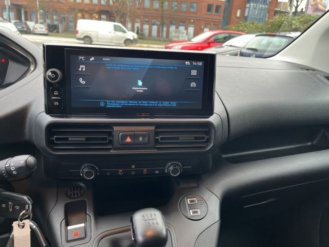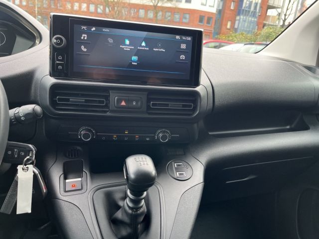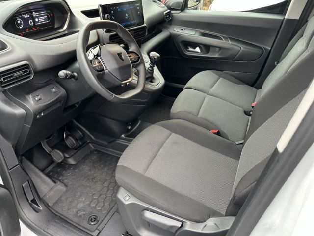 Klimaanlage manuell, Radio:10"" Infotainmentsystem ""All In One, Paket: Winter-Comfort-Paket-ICE - Frontscheibe beheizbar - Sitzheizung vorne, Mittelsitz ausgenommen - Lenkrad in Lederoptik, beheizt - Paket ""Visibility"" (Regen- und Lichtsensor) - Nebelscheinwerfer - Außenspiegel elektrisch verstellbar, beheizbar und einklappbar - Komfortfahrersitz (6-fach einstellbar), Bodenbelag: Schutz Laderraumboden und Seitenwände aus Kunststoff (PP), Sitz: Multiflex-Kabine, Airbag: 6 Airbags, Einparkhilfe hinten, akustisch, Paket: Safety Paket, Partikelfilter für Ottomotoren, Zentralverriegelung, Follow-me-home-Funktion automatisch, Allwetterreifen, 6-Gang-Getriebe, ABS, Außenspiegel elektr. verstellbar, behei., Bodenbelag: Gummibodenbelag in Reihe 1, Bodenbelag: Teppichbodenbelag in Reihe 1, Bordcomputer, Dachablage, Drehzahlmesser, Dritte Bremsleuchte, ESP inkl ASR, Fensterheber elektrisch vorne, Heckflügeltür verblecht, Kombiinstrument, analog, Kopfstützen (2) höhenverstellbar, Lackierung: Uni-Lackierung, Lenkrad höhen- und tiefenverstellbar, Peugeot Connect Box, Polster: Stoff, Reifendruckkontrollsystem, Reifenreparaturkit, Räder: 15-Zoll-Stahlfelgen mit Sommerre, Schiebetür rechts verblecht, Seitenschutzleisten in Schwarz, Servolenkung, elektrisch, Sicherheitsgurte, Sicherheitsgurte, Sitze: Beifahrersitz 4-fach einstellbar, Sitze: Fahrersitz 4-fach einstellbar, Smartphone Station inkl. Lendkradbediene, Stop- & Start-Automatik, Tagfahrlicht, Trennwand verblecht, Verzurrösen im Laderaum, Wegfahrsperre,